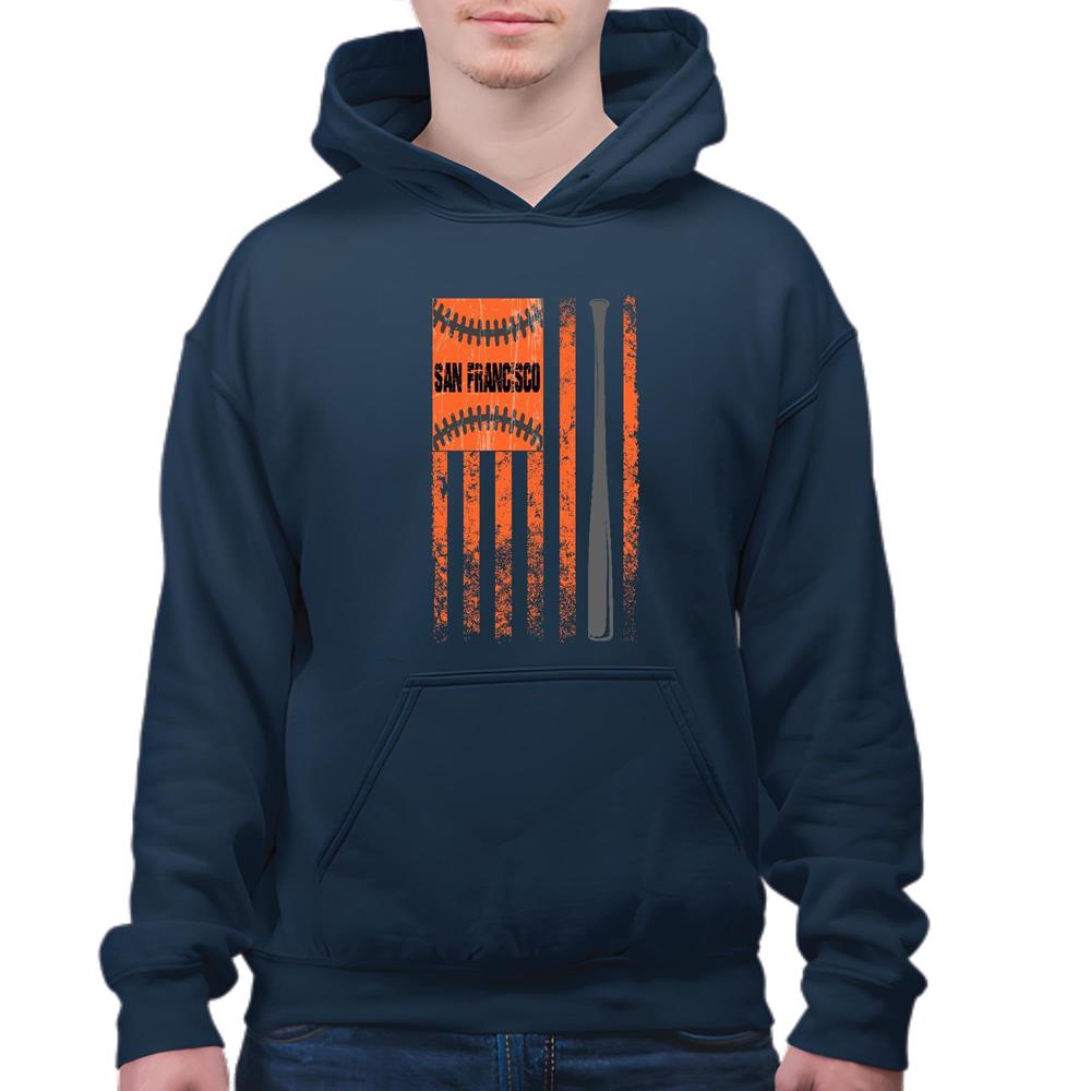 San Francisco Flag with Baseball Bat for Baseball Player Navy and Muticolor Unisex Hoodie
