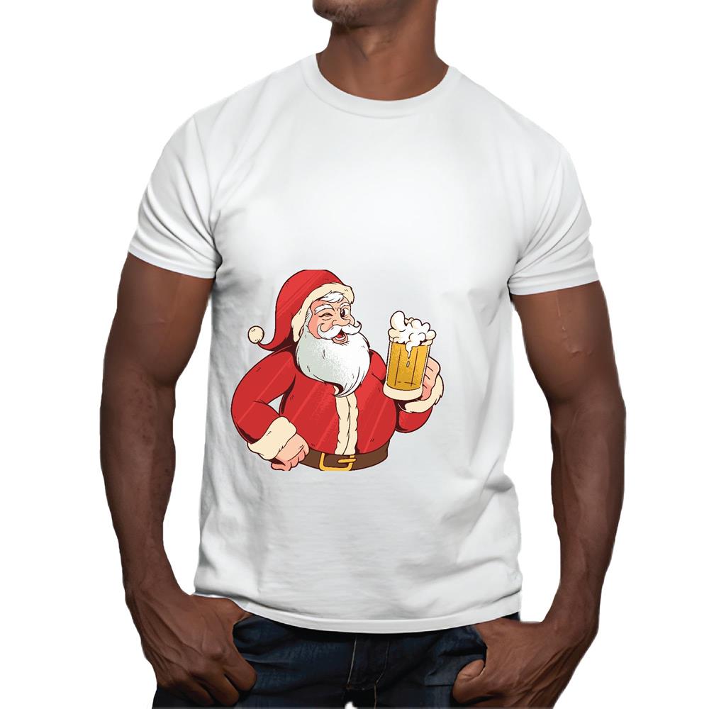 Santa Claus Beer Gift for Beer Lovers Illustration of Beer and Santa Claus Beer Men Women White Gray Multicolor T shirt