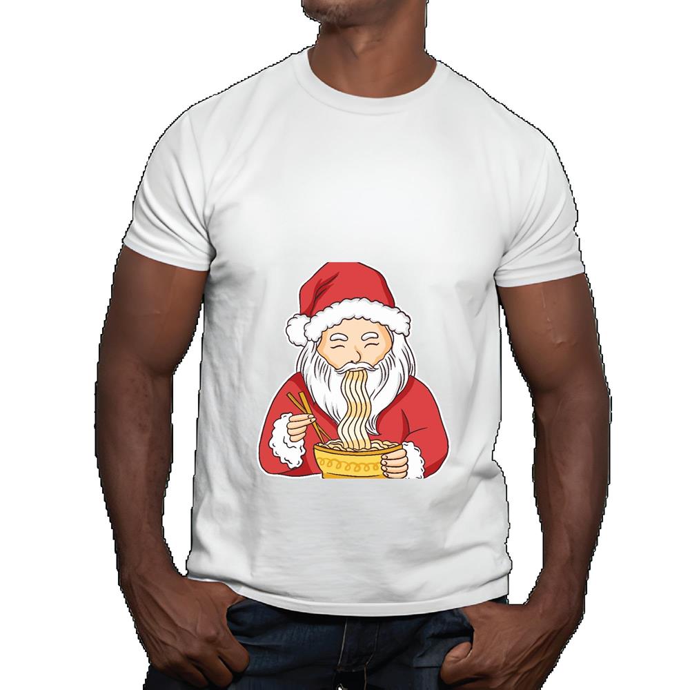 Santa Eating Ramen Ethnic Food Gift for Food Lovers Asian Cuisine Fans Men Women White Gray Multicolor T shirt