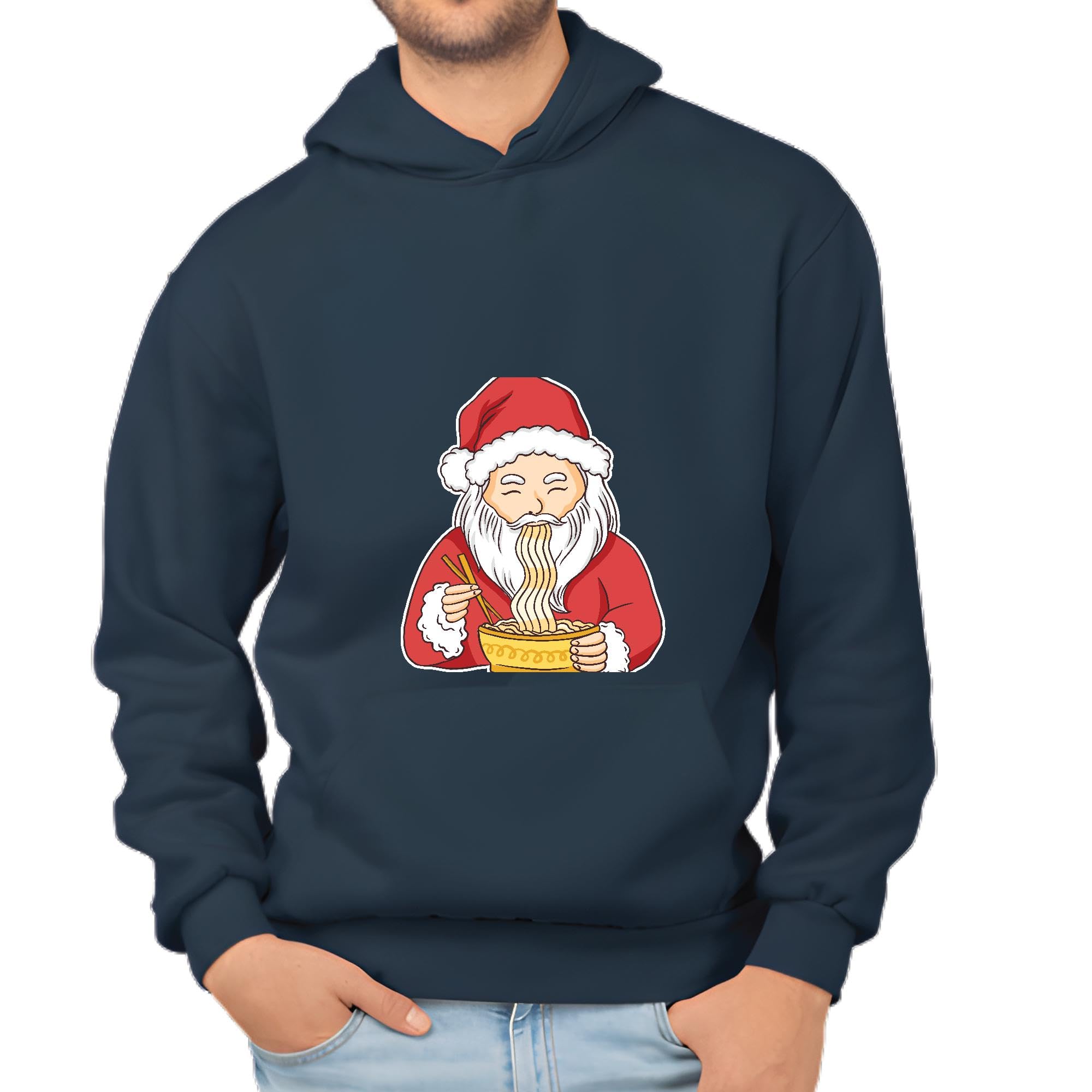 Santa Eating Ramen Ethnic Food Gift for Food Lovers Asian Cuisine Fans Navy and Muticolor Unisex Hoodie