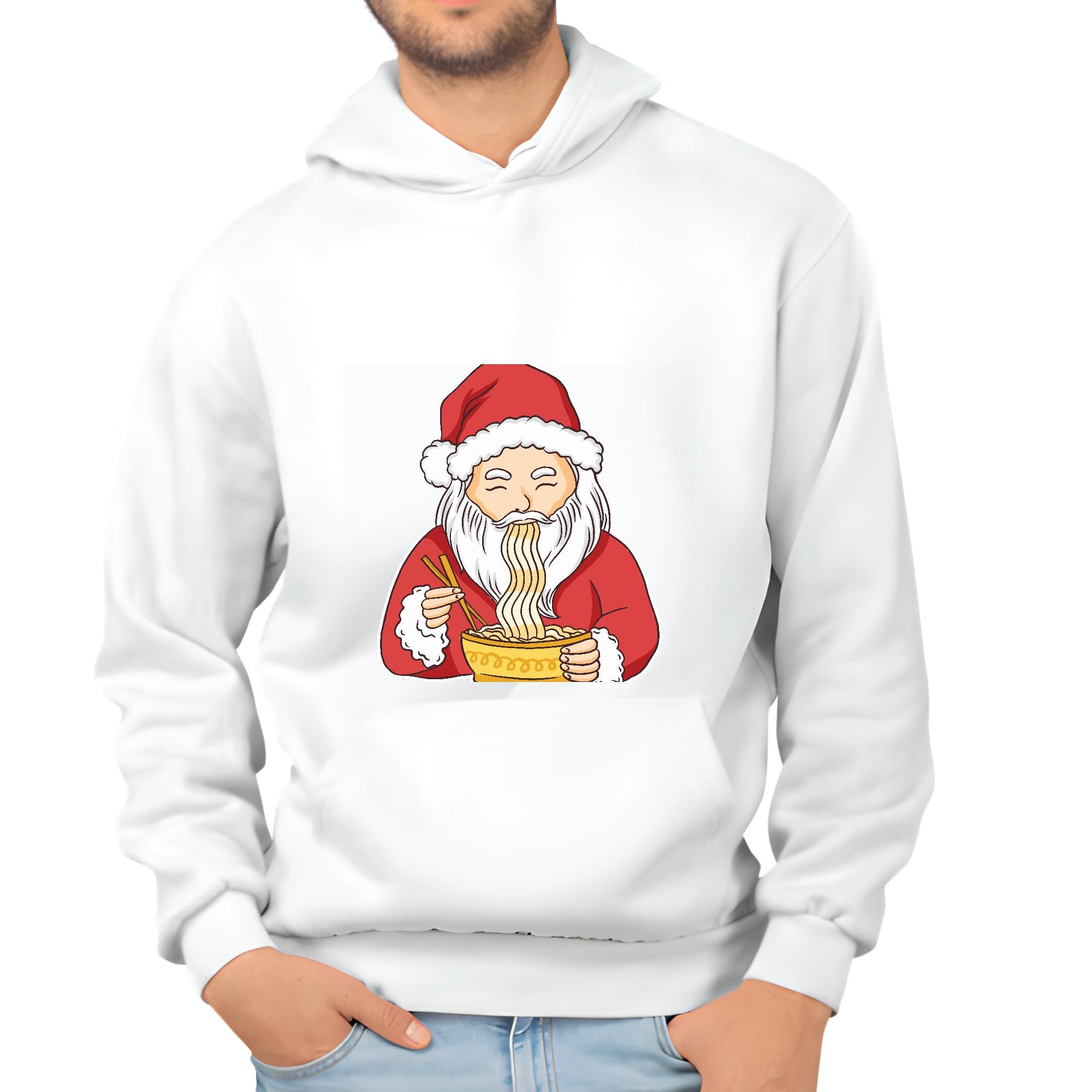 Santa Eating Ramen Ethnic Food Gift for Food Lovers Asian Cuisine Fans White and Muticolor Unisex Hoodie