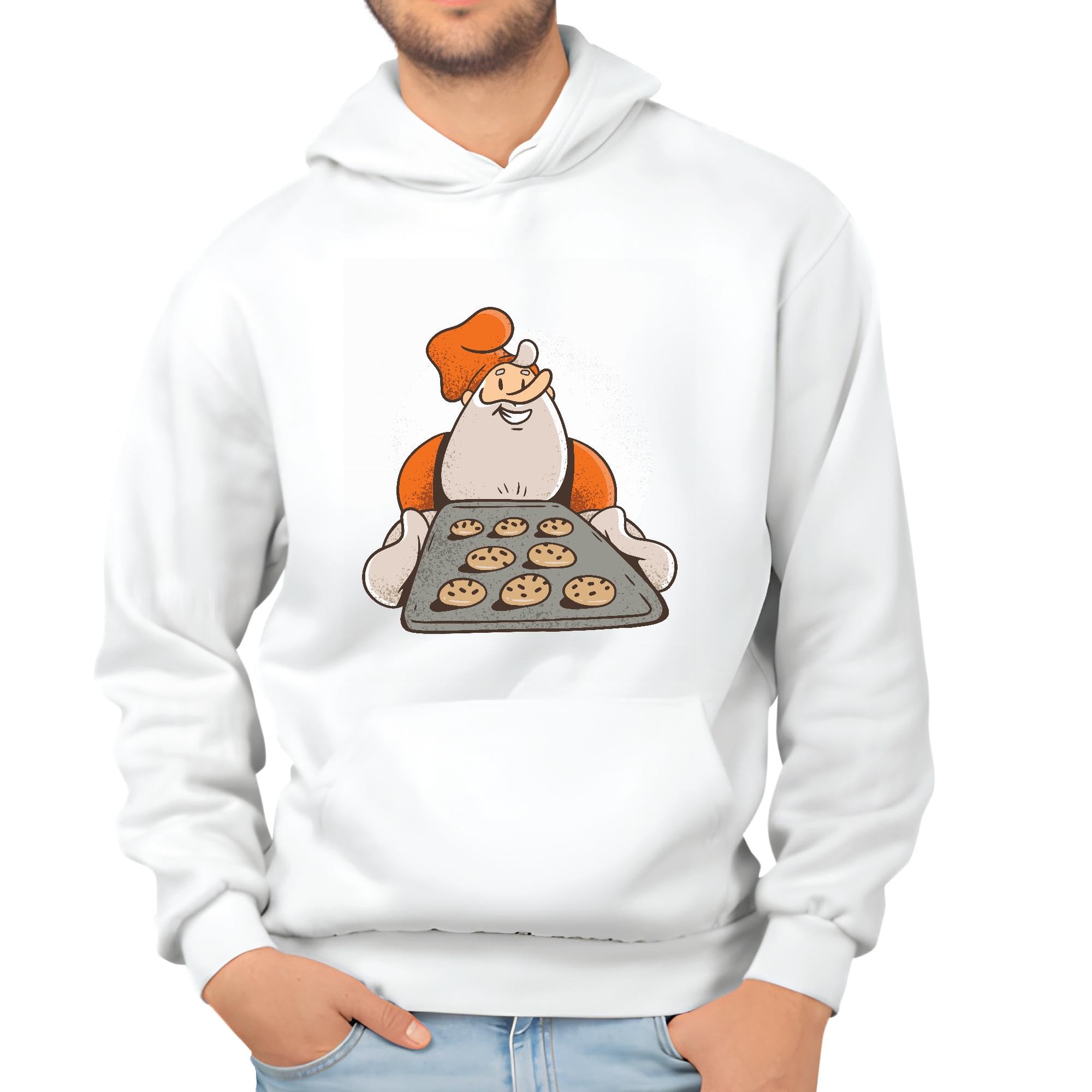 Santa Cookies Gift Cartoon Santa Baking Delicious Cookies Cooking Gift for Kids and Adults White and Muticolor Unisex Hoodie