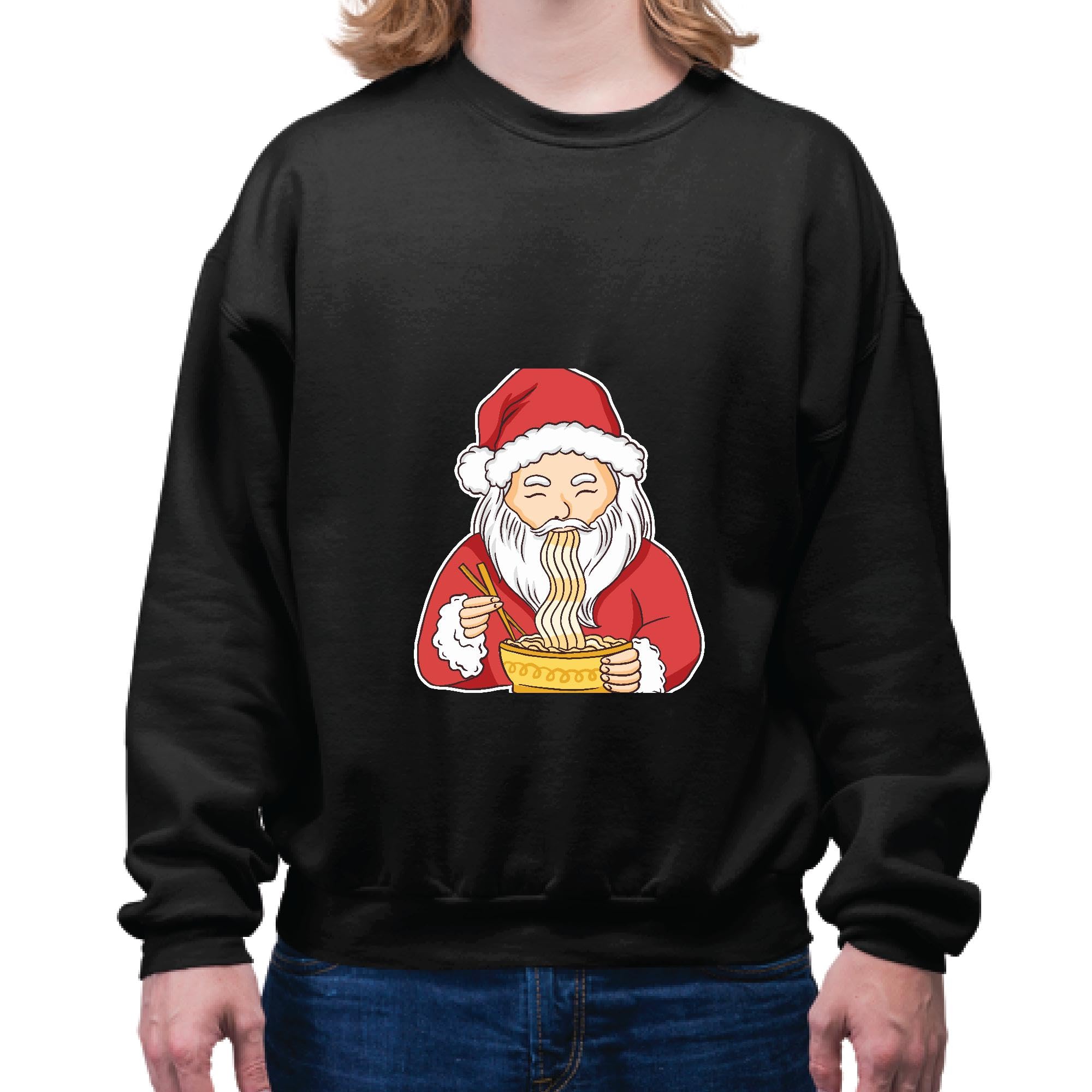 Santa Eating Ramen Ethnic Food Gift for Food Lovers Asian Cuisine Fans Navy Black Muticolor Unisex Sweatshirt