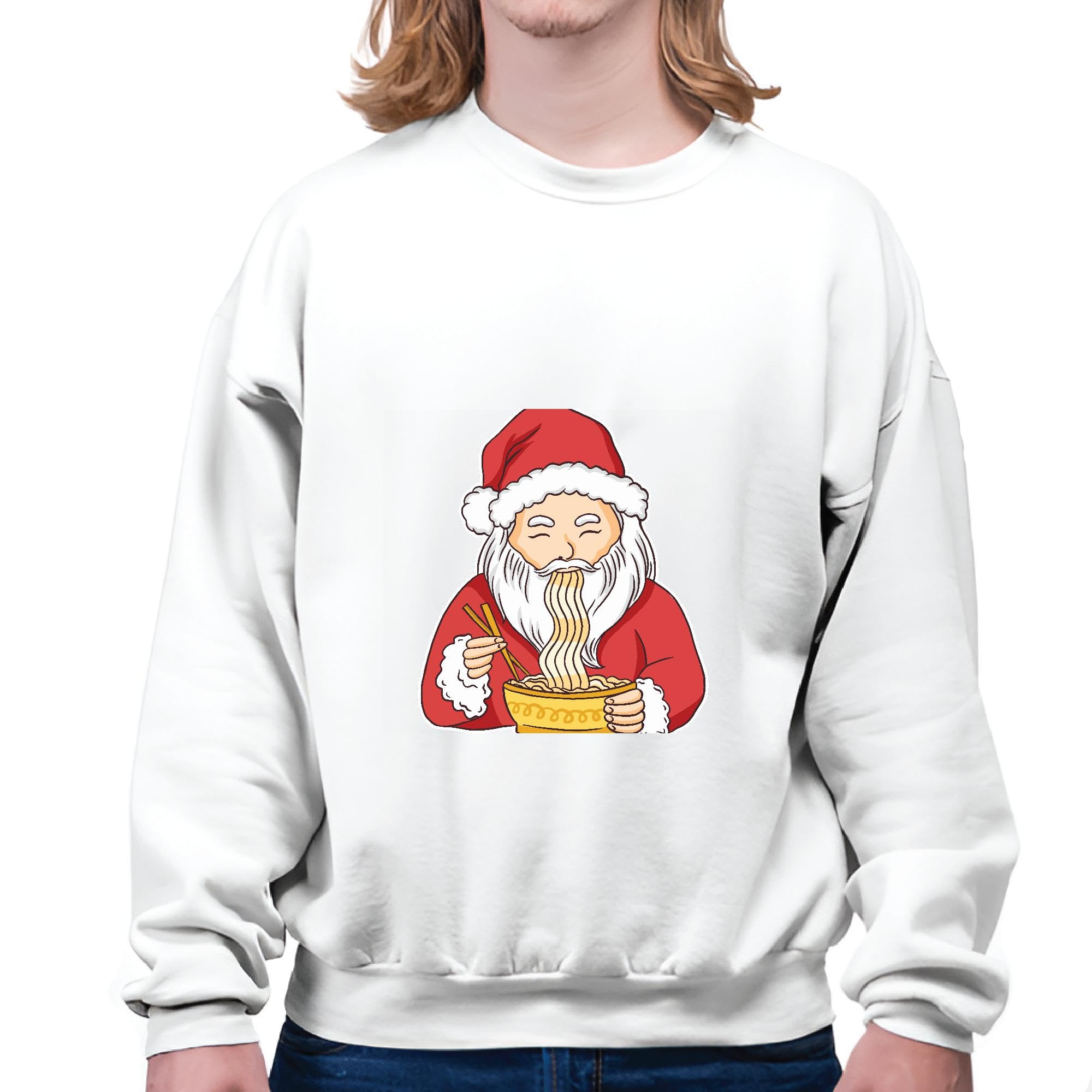 Santa Eating Ramen Ethnic Food Gift for Food Lovers Asian Cuisine Fans Grey White Muticolor Unisex Sweatshirt