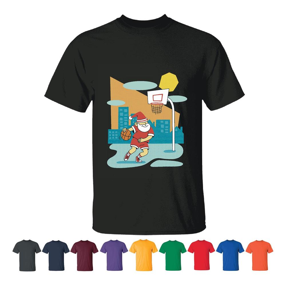 Santa Playing Basketball Cartoon Style Sports Gift for Kids and Adults Men Women Black T shirt