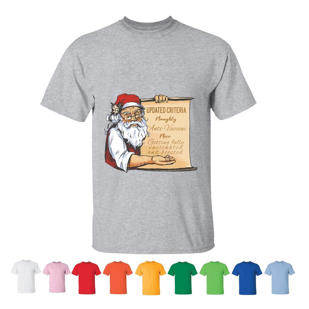 Santa Gift Ideas for Anti Vaccine and Fully Vaccinated People Cool and Naughty Designs Men Women White Gray T shirt