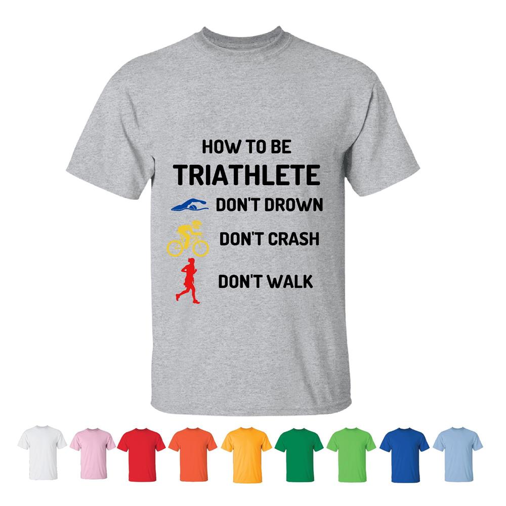 Sarcasm for Athletes How to be a Triathlete do not drown do not crash do not walk Men Women White Gray T shirt