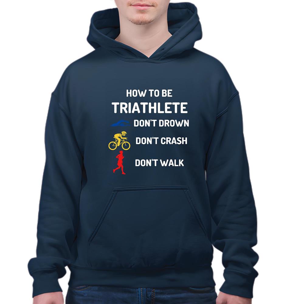 Sarcasm for Athletes How to be a Triathlete do not drown do not crash do not walk Navy and Muticolor Unisex Hoodie