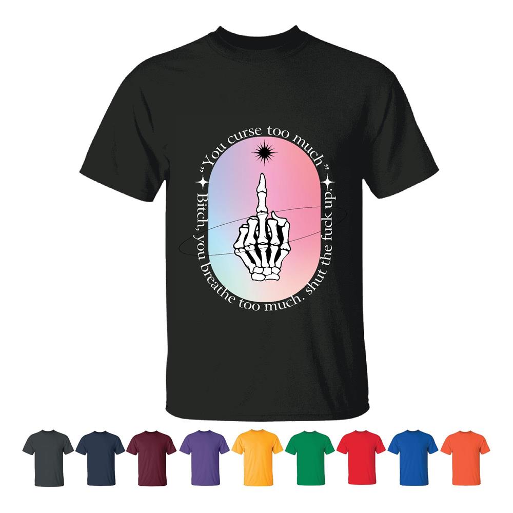 Sarcasm Funny Humor Warning Gift for Bitch Breathe Curse TooMuch Lovers Men Women Black T shirt