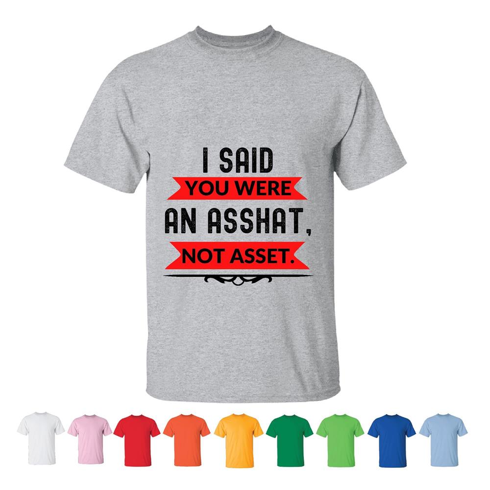 Sarcasm Humor T-Shirt I Said You Were An Asshat Not Asset For Men and Women Men Women White Gray T shirt