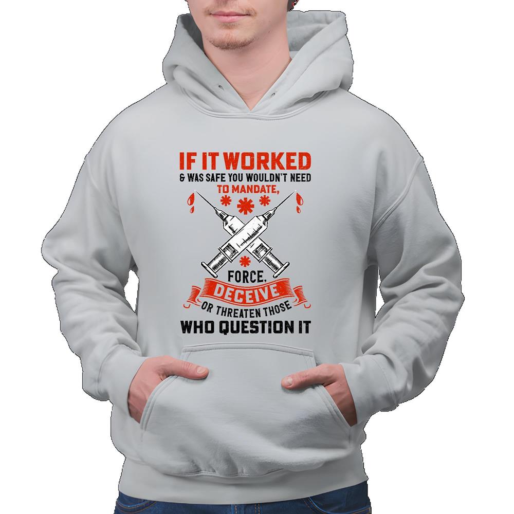 Sarcasm quote If it worked and was you wouldnt need to mandate force deceive or threaten Gray and Muticolor Unisex Hoodie