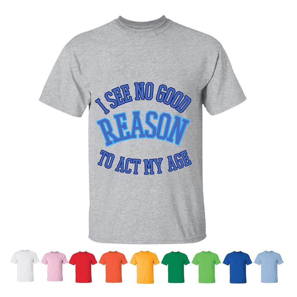 Sarcastic Funny for Friends I See No Good Reason Act Age Design Gift Idea Men Women White Gray T shirt