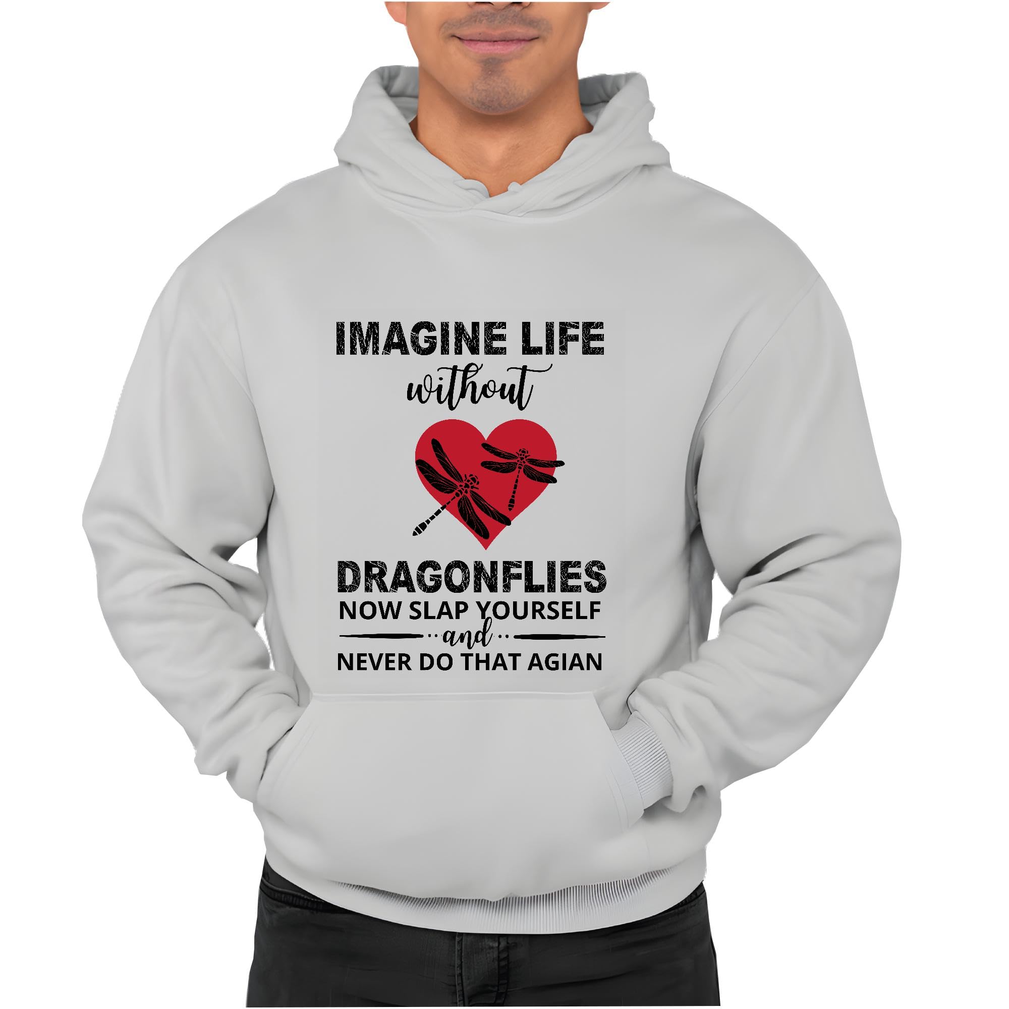 Sarcastic Gift Imagine Life Without Dragonflies Slogan Tee Gray and Muticolor Unisex Hoodie