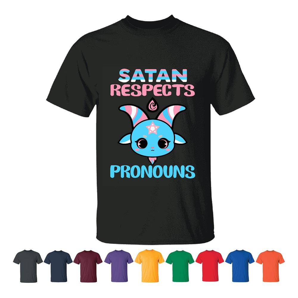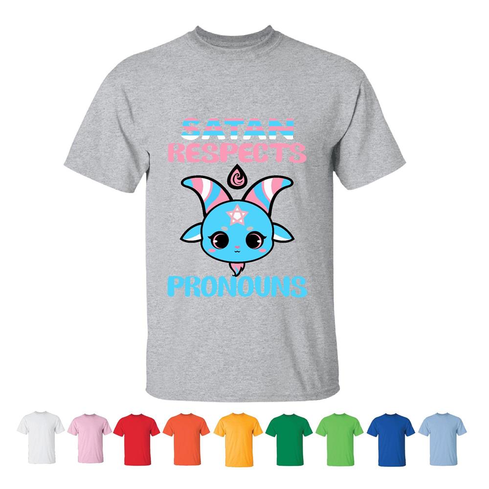 Satan Respects Pronouns Transgender Trans flag LGBT for LGBT community Men Women White Gray T shirt
