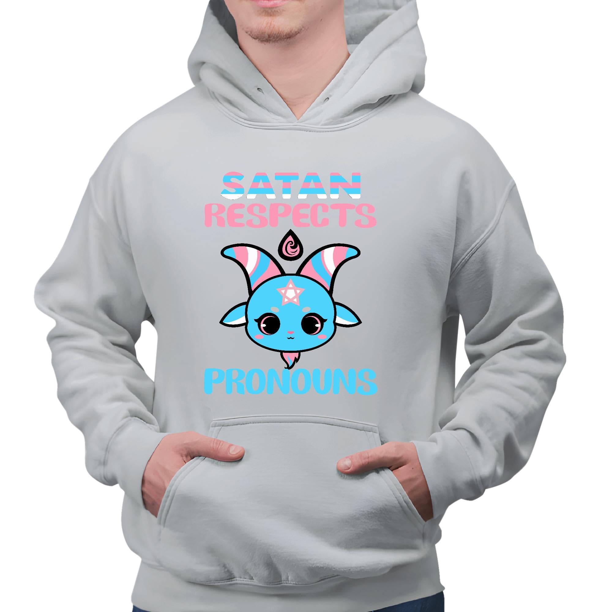 Satan Respects Pronouns Transgender Trans flag LGBT for LGBT community Gray and Muticolor Unisex Hoodie
