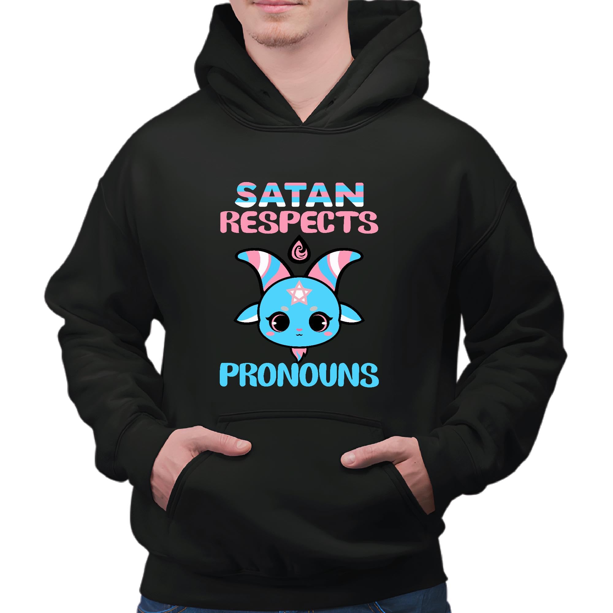 Satan Respects Pronouns Transgender Trans flag LGBT for LGBT community Black and Muticolor Unisex Hoodie