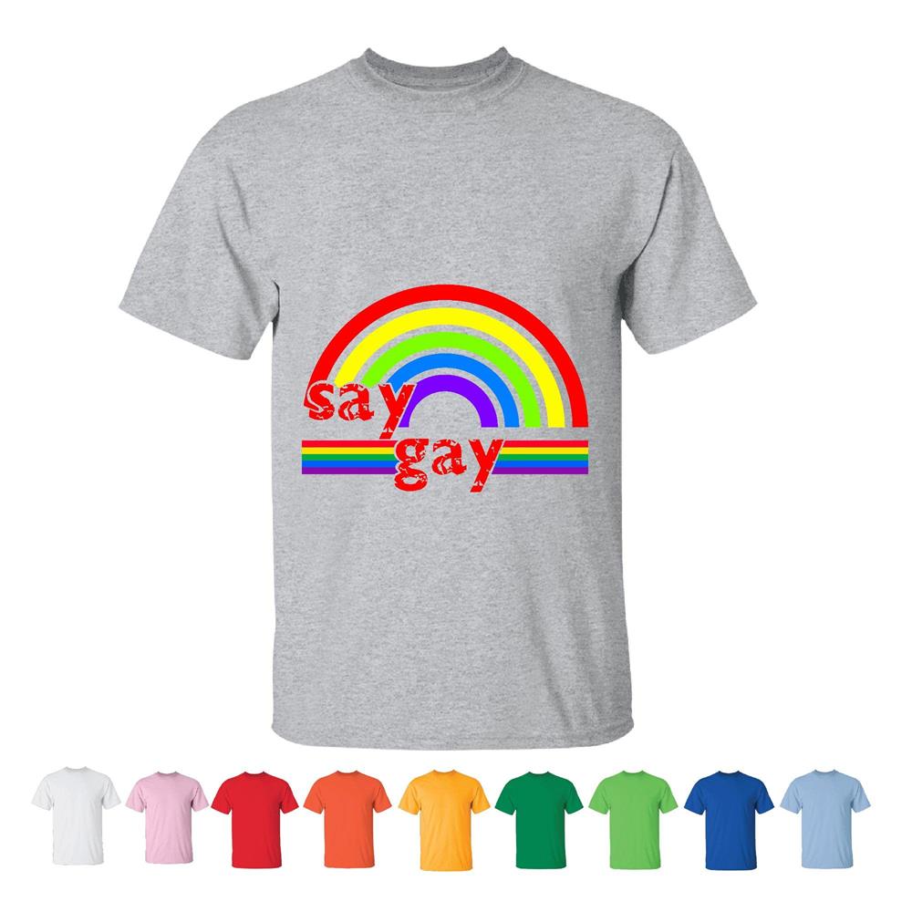 Say Gay rainbow LGBT pride Gay Pride support respect Men Women White Gray T shirt