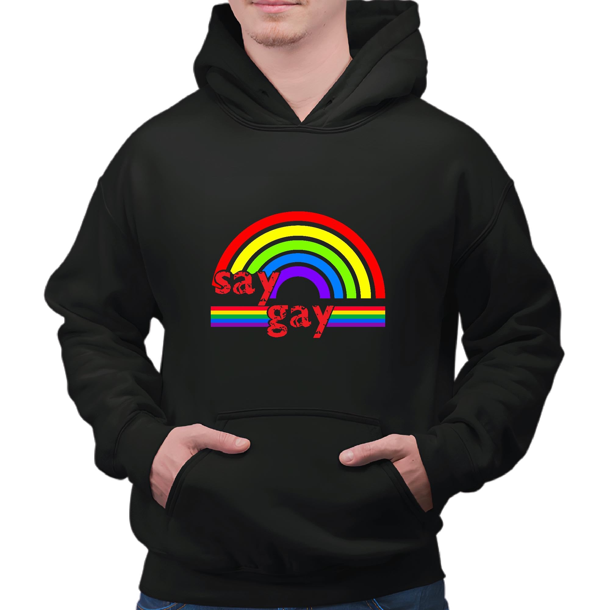 Say Gay rainbow LGBT pride Gay Pride support respect Black and Muticolor Unisex Hoodie