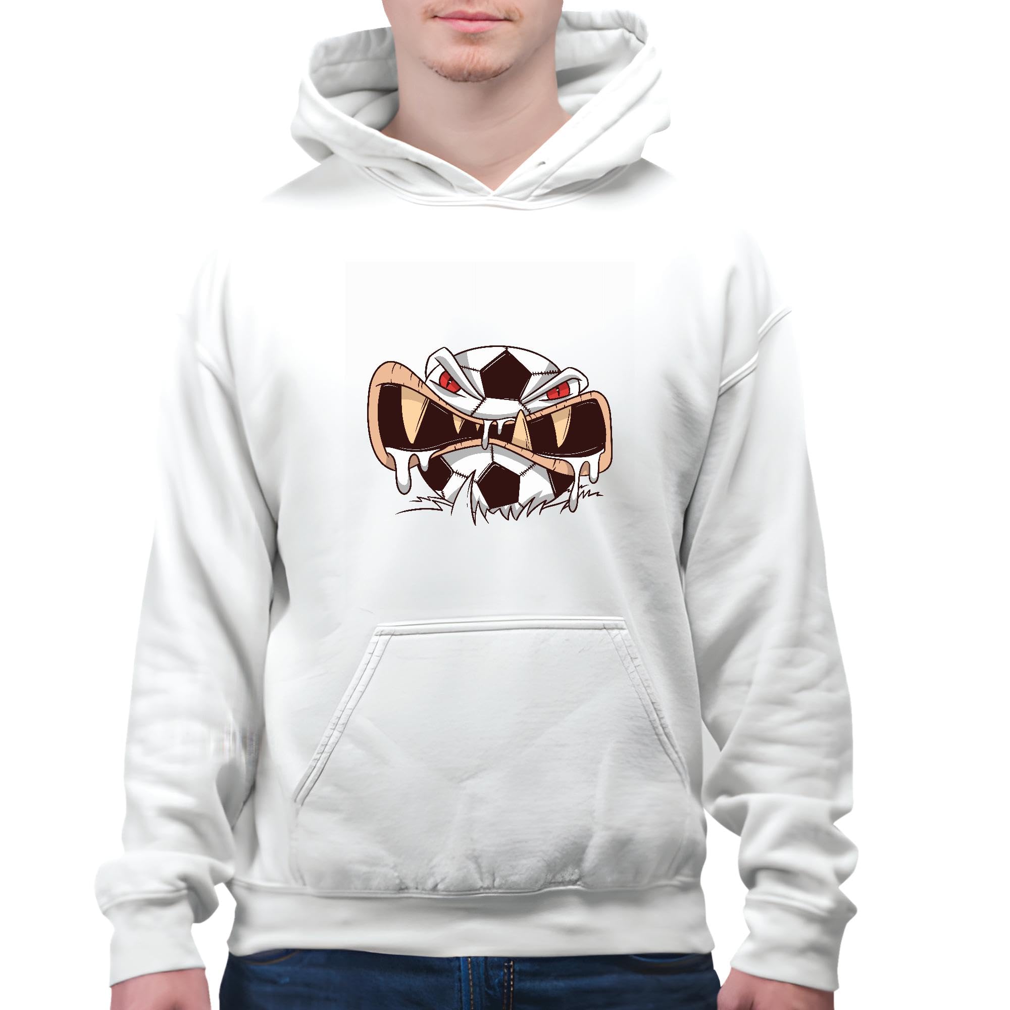 Scary Angry Football Ball Sports Gift for Football Fans White and Muticolor Unisex Hoodie