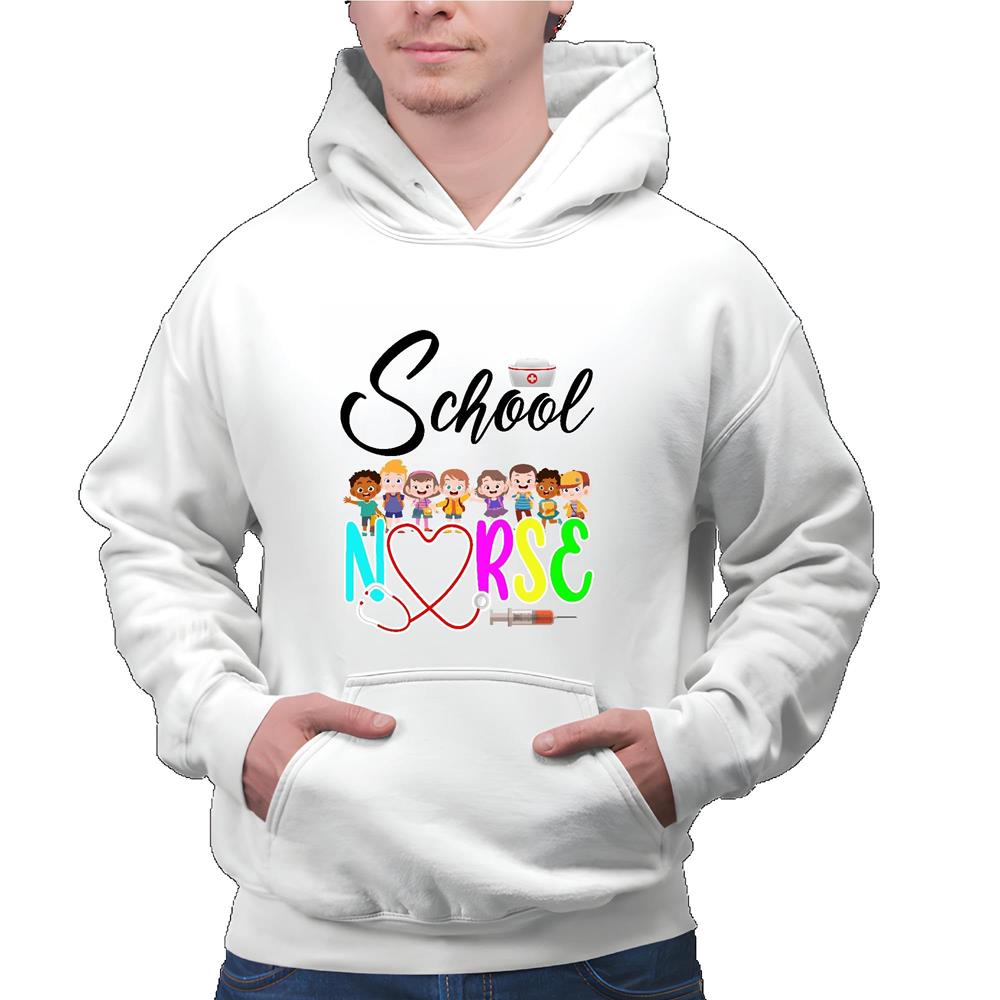 School Nurse Elementary School Registered Nurse Back to School Gray and Muticolor Unisex Hoodie