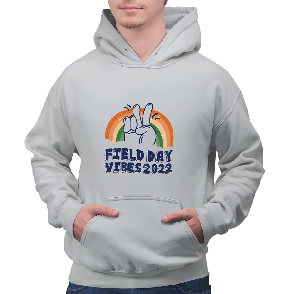 School Inspirational Gift for Teachers and Students Field Day Vibes 2022 Gray and Muticolor Unisex Hoodie