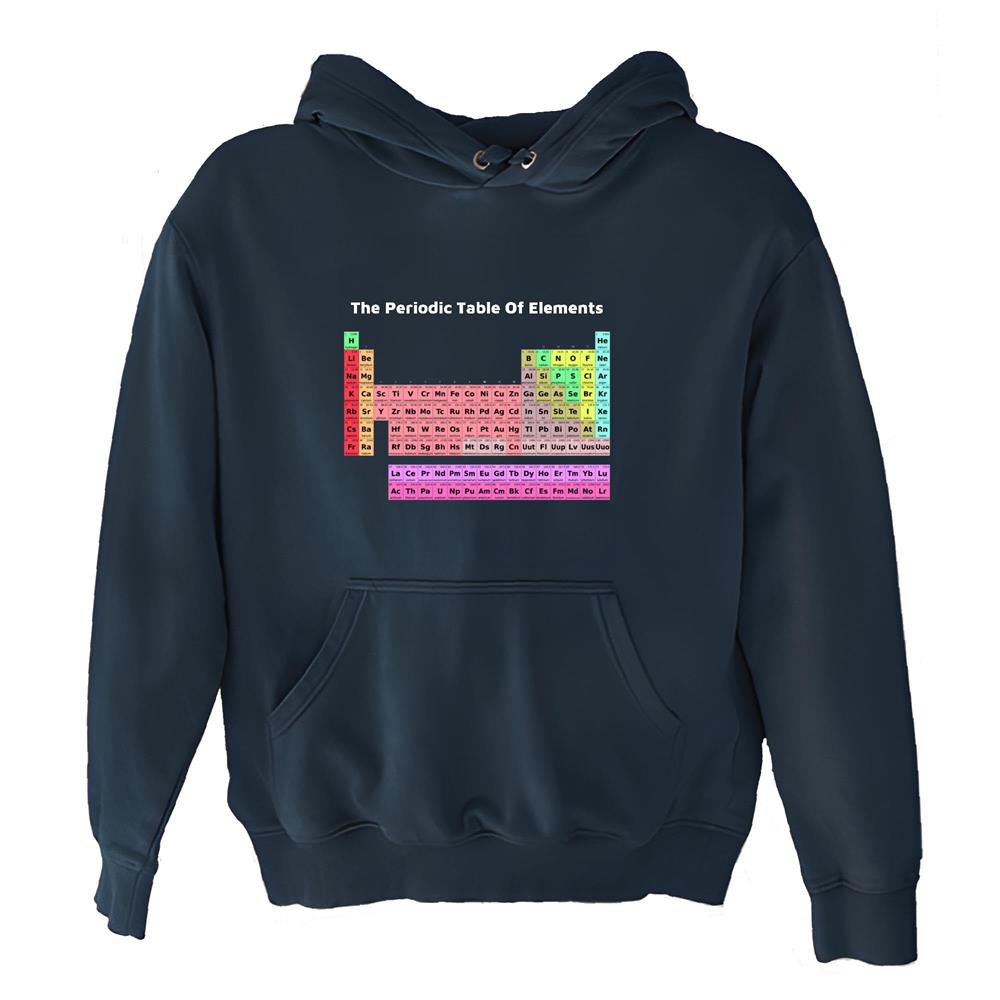 Science for Kids Teens Adults The Periodic Table of Elements Navy and Muticolor Unisex Hoodie