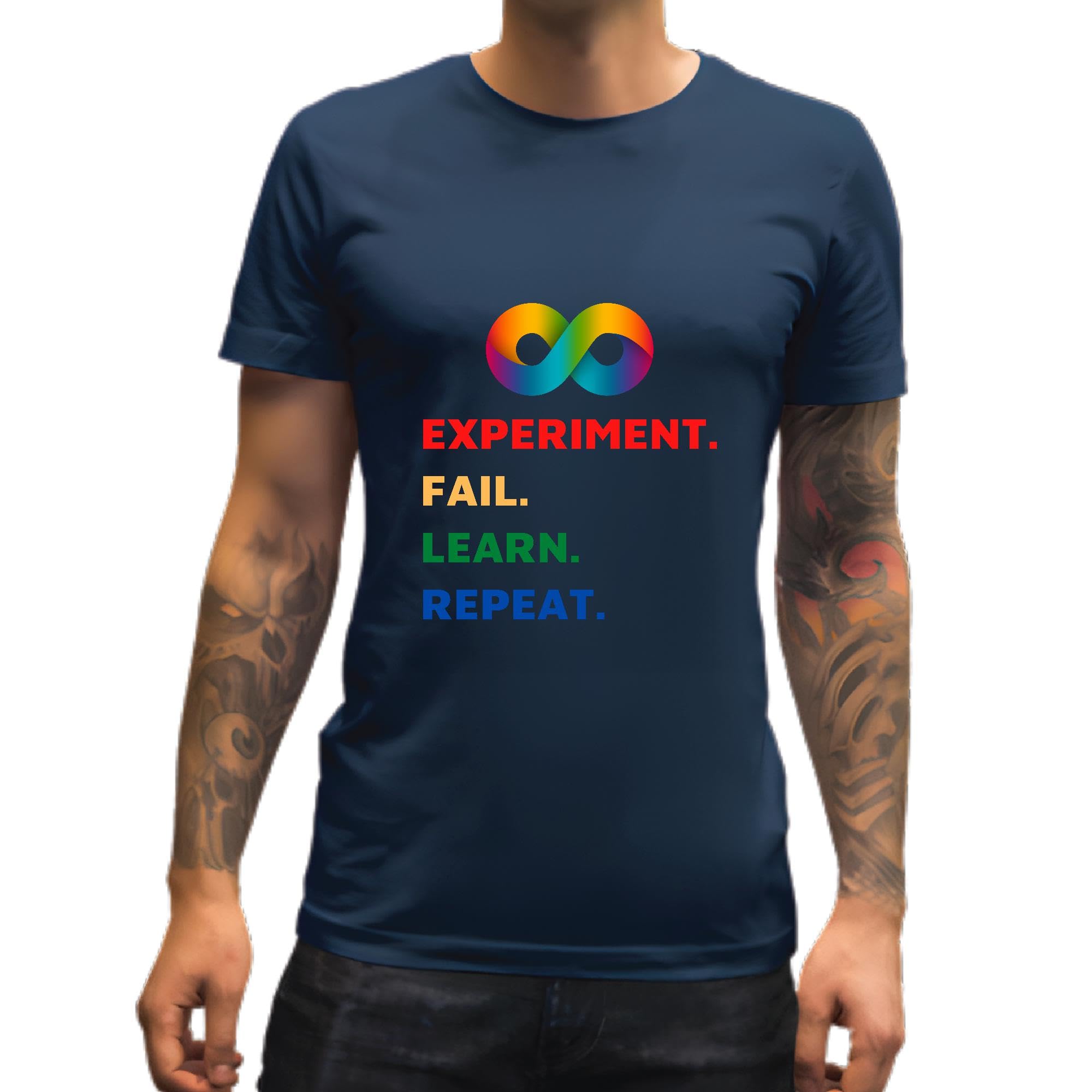 Science Experiment Fail Learn Repeat Funny Inspirational for Kids Men Women Navy Multicolor T shirt