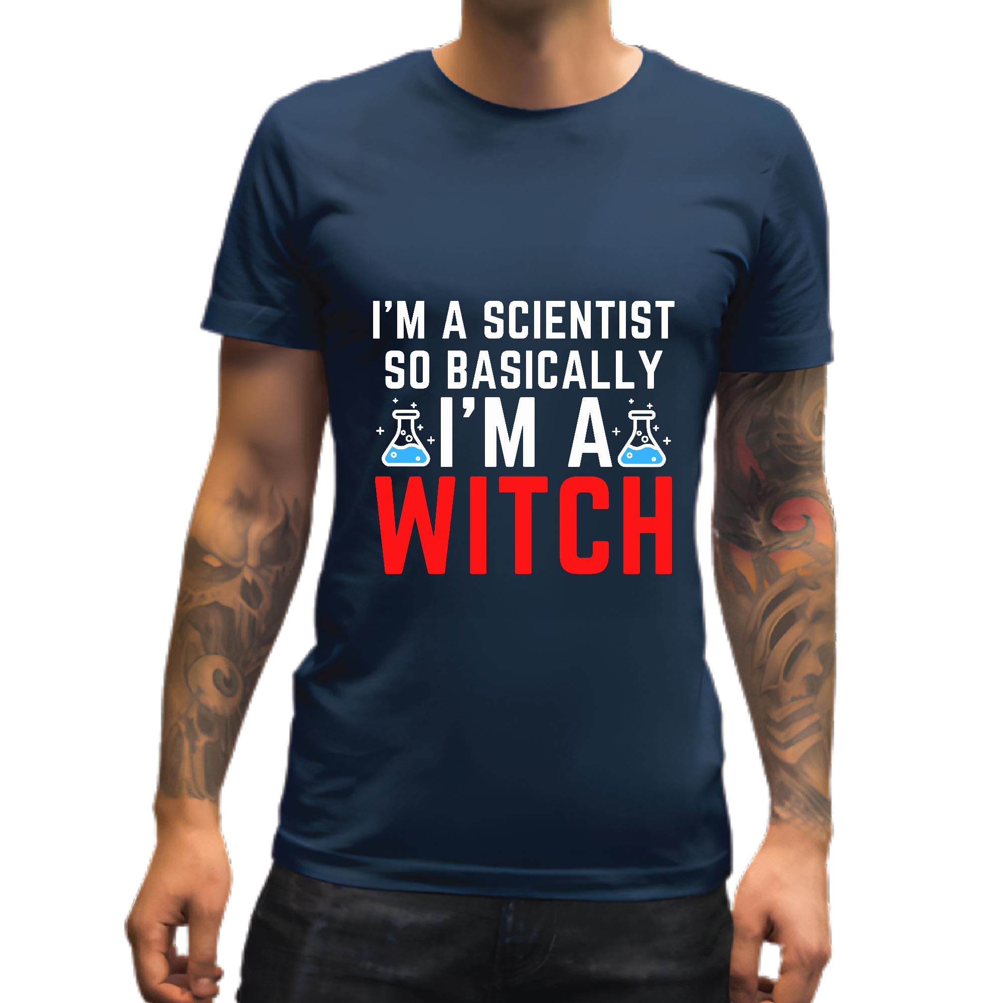 Scientist Witch Funny Humor for Chemists Men Women Navy Multicolor T shirt