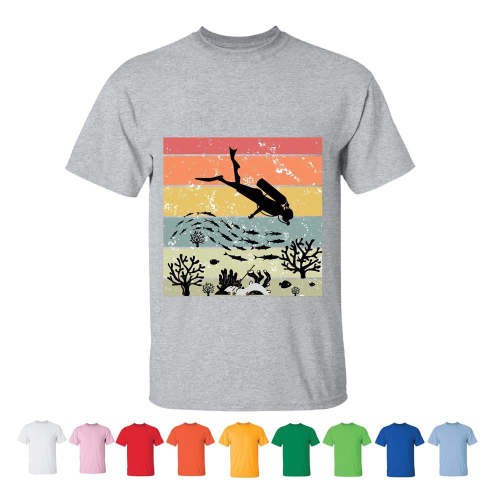 Scuba Diving Designs for Deep Sea Snorkelers Adults Kids Men Women White Gray T shirt
