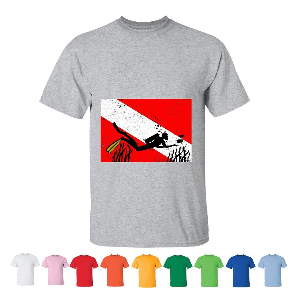 Scuba Diver flag Snorkeling Diving Freediving Spearfishing Men Women White Gray T shirt