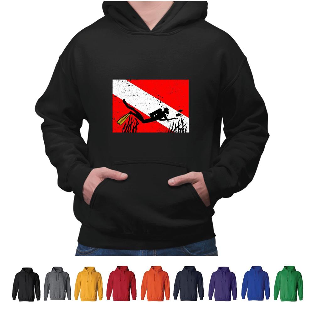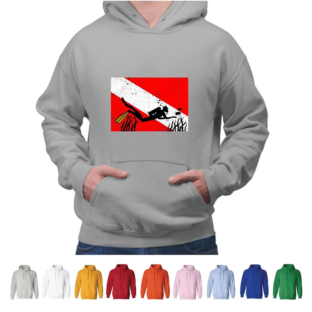 Scuba Diver flag Snorkeling Diving Freediving Spearfishing Gray and Muticolor Unisex Hoodie