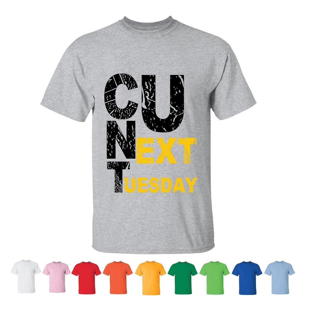 See You Next Tuesday Hidden Message Cunt Gift Idea for Vulgar Humor Fans Men Women White Gray T shirt