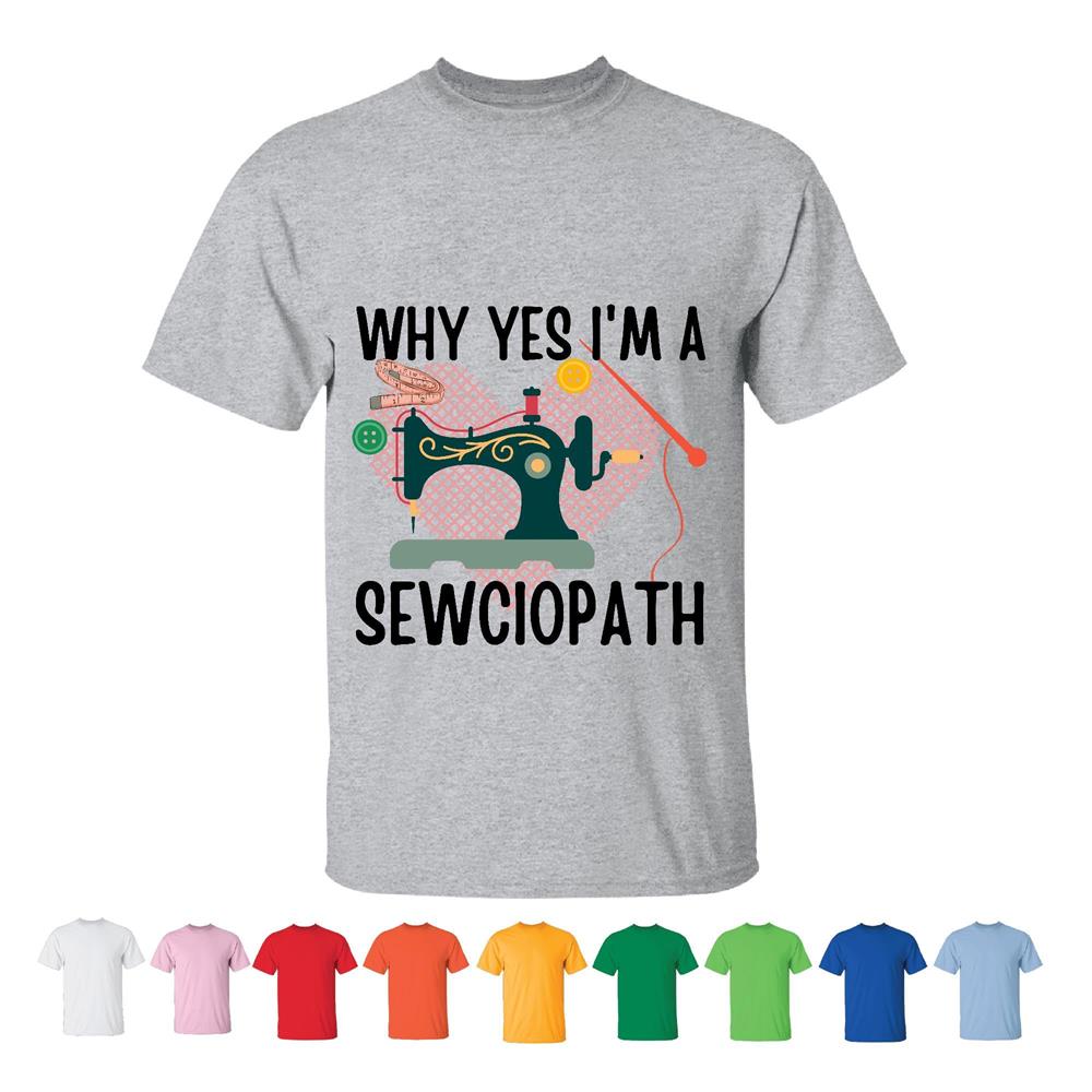 Sewciopath Sewer Funny Design Gift for Creative Sewers Men Women White Gray T shirt