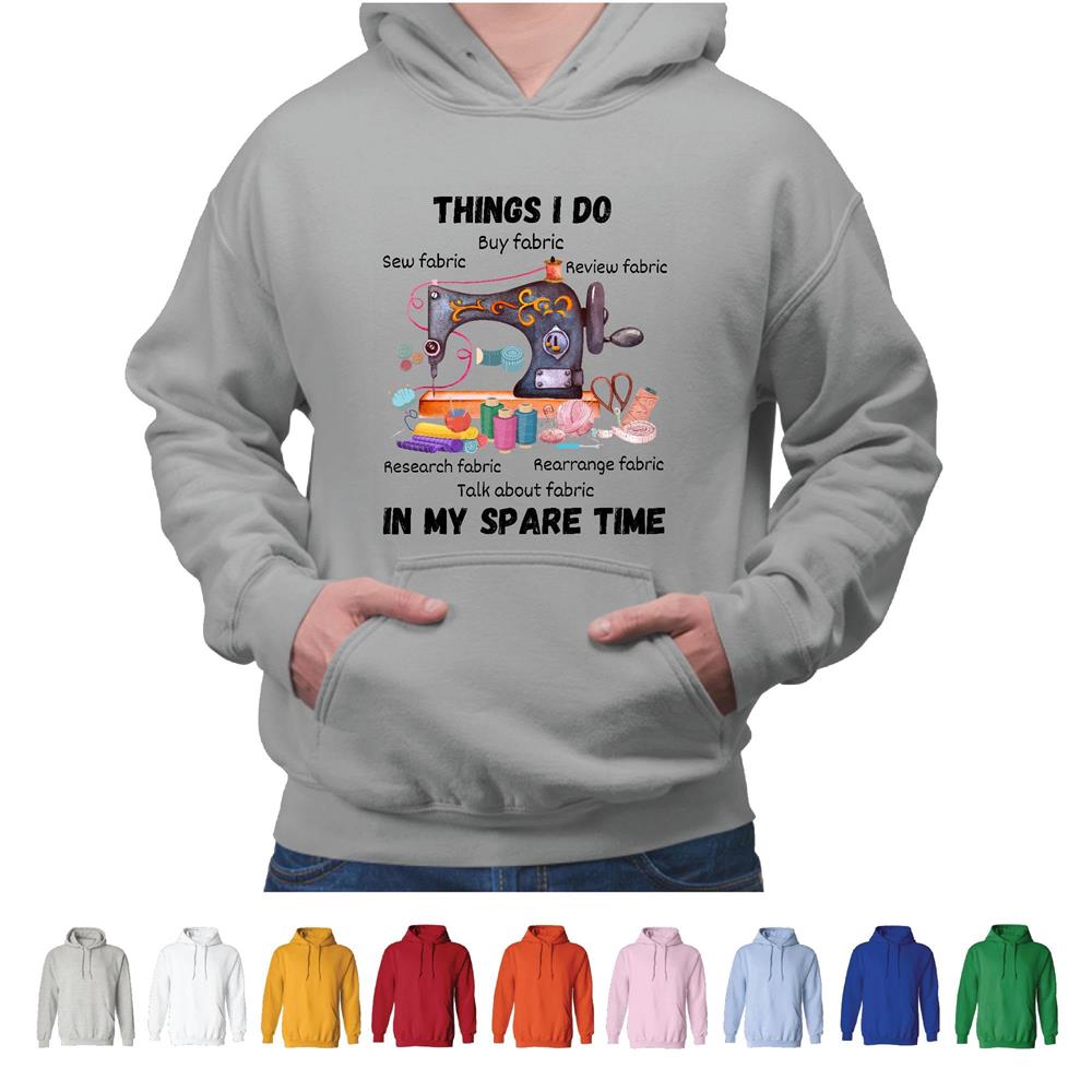 Sewing woman saying Things I do in my spare time Sew Fabric Quilting Stitching Needlework Gray and Muticolor Unisex Hoodie