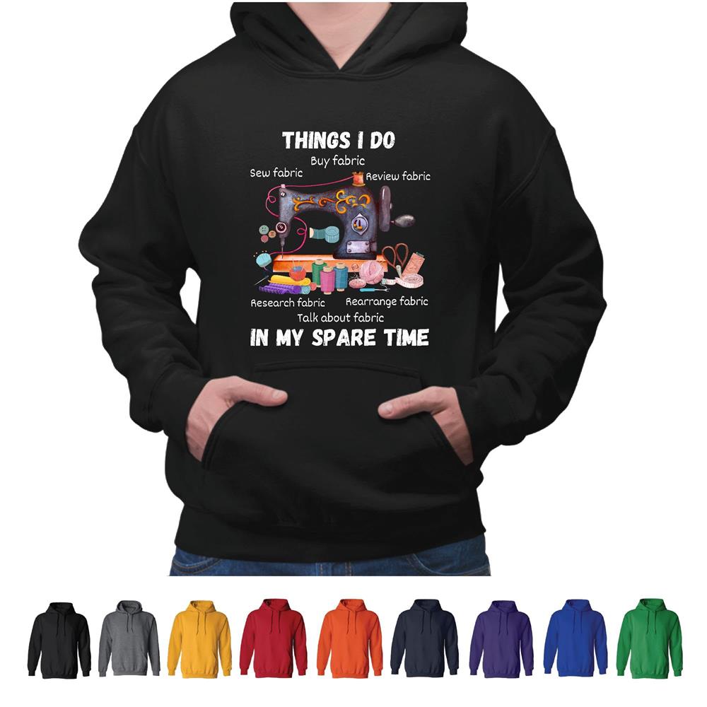 Sewing woman saying Things I do in my spare time Sew Fabric Quilting Stitching Needlework Black and Muticolor Unisex Hoodie