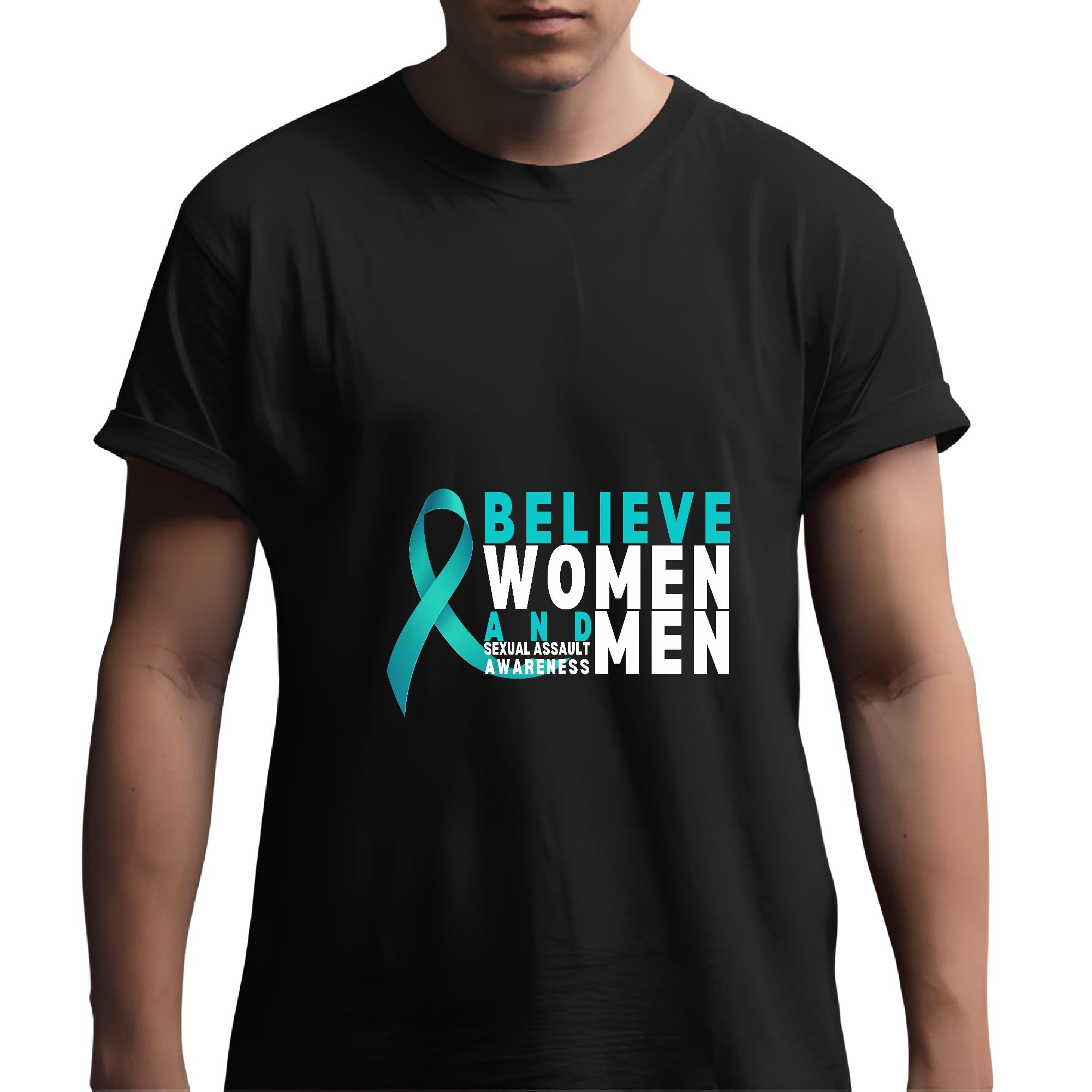 Sexual Assault Awareness Ribbon Believe and Support Survivors for Men Women Men Women Black Multicolor T shirt