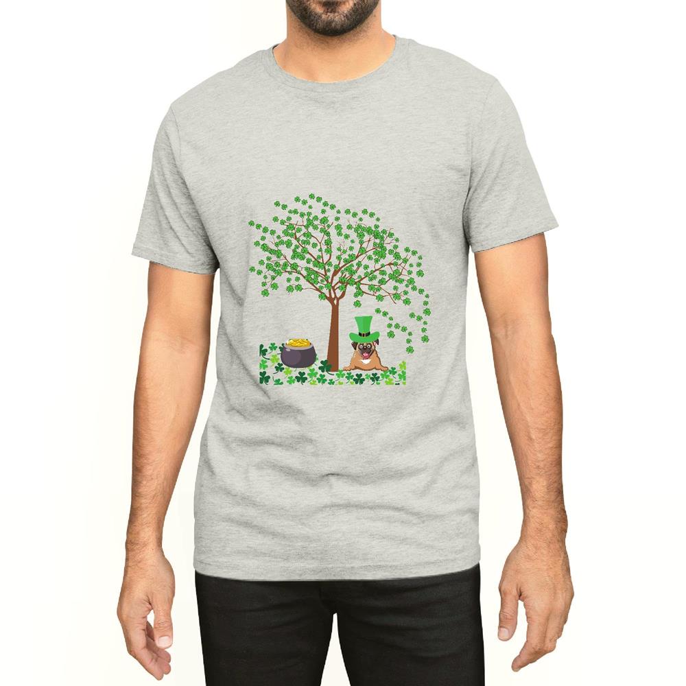 Shamrock Tree Pug cute for Pet Pugs Puppy dog lover in St Patricks day Men Women White Gray Multicolor T shirt