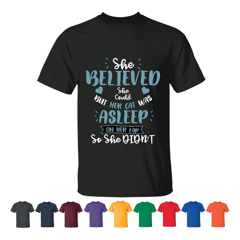 She believed she could but her Cat was asleep funny for Cat lover Men Women Black T shirt