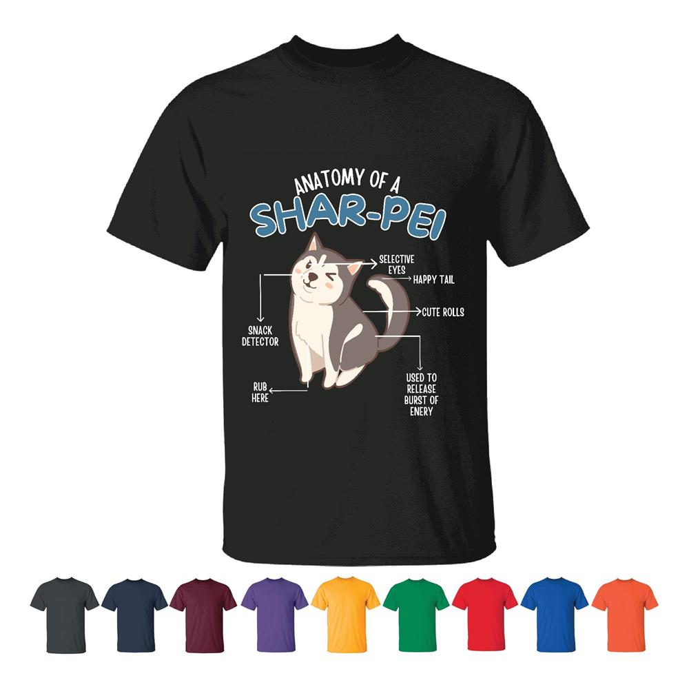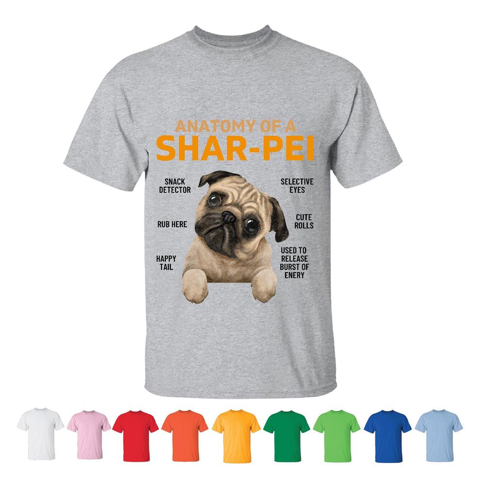 Sharpei Dog Funny Body Parts Analysis Pet Care Men Women White Gray T shirt
