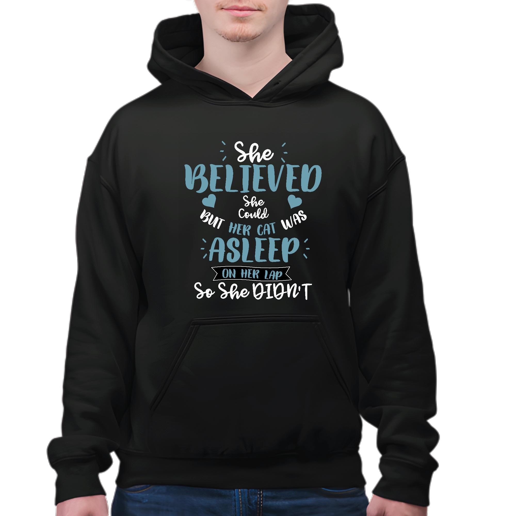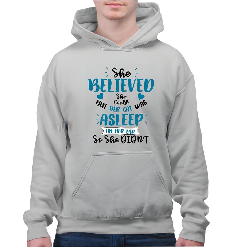 She believed she could but her Cat was asleep funny for Cat lover Gray and Muticolor Unisex Hoodie