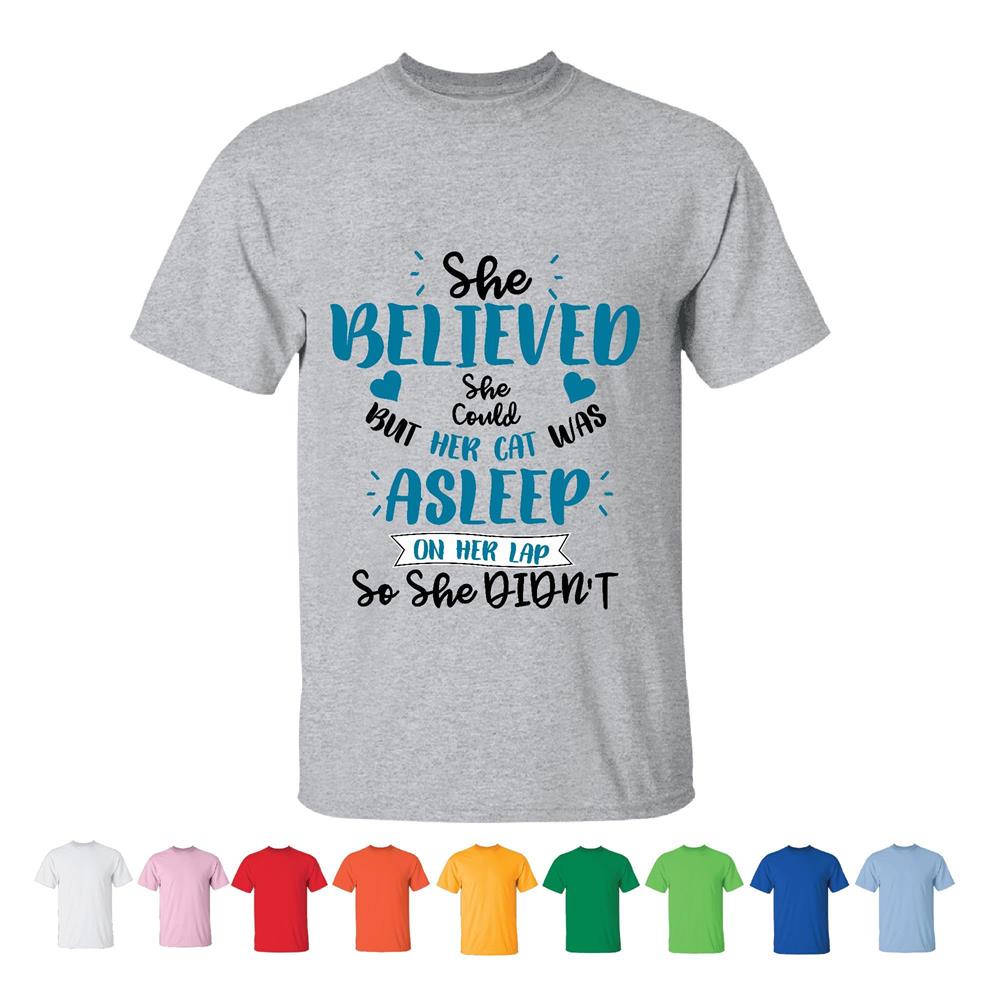 She believed she could but her Cat was asleep funny for Cat Pet lover Men Women White Gray T shirt