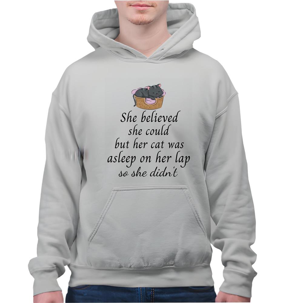 She believed she could but her Cat was asleep funny for Cat Pet lover Gray and Muticolor Unisex Hoodie