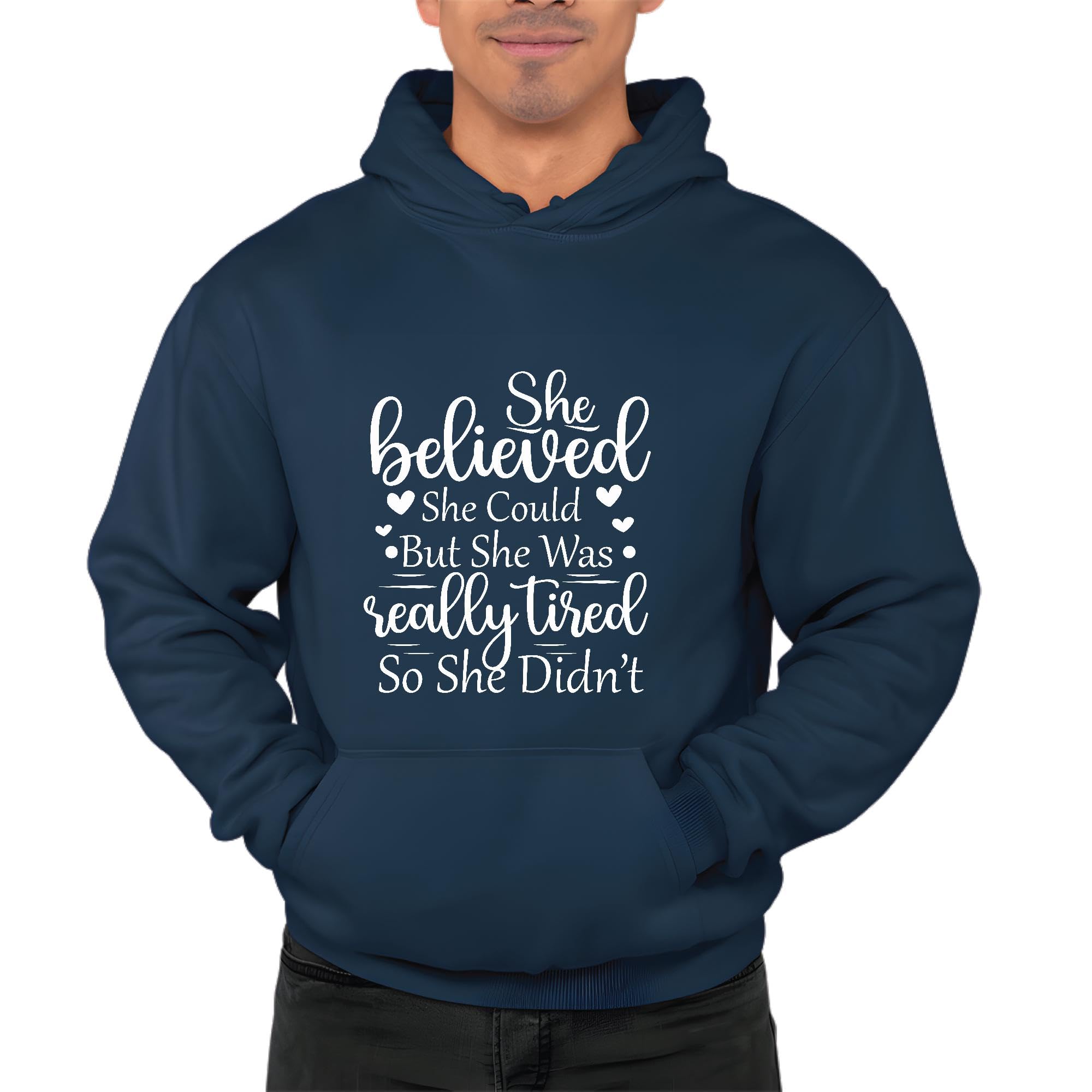 She believed she could but she was really tired Navy and Muticolor Unisex Hoodie