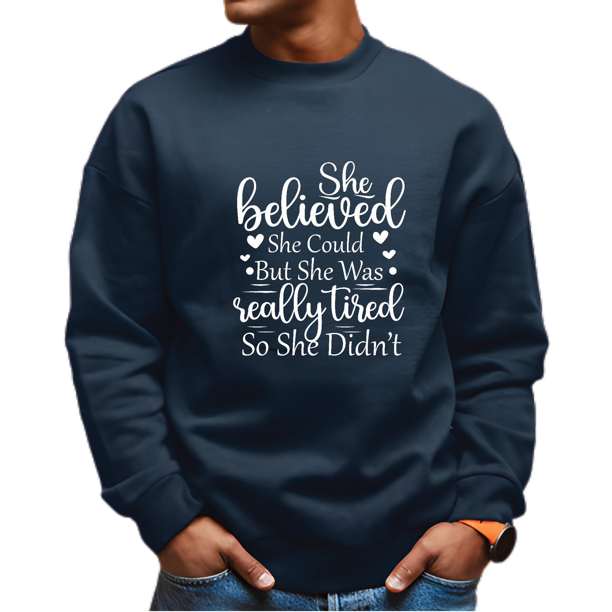 She believed she could but she was really tired Navy Muticolor Unisex Sweatshirt
