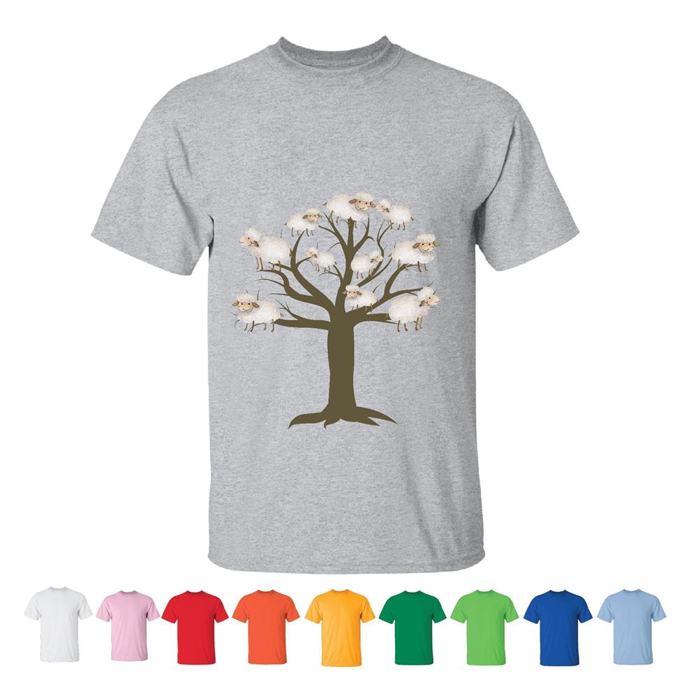 Sheep Tree Graphic Design Art Prints Men Women White Gray T shirt