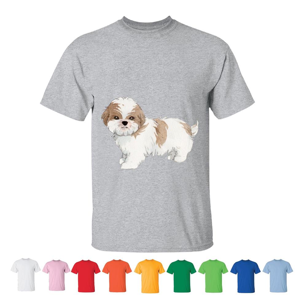Shih Tzu Puppy Dog Lover Animal Canine Companion Present Men Women White Gray T shirt
