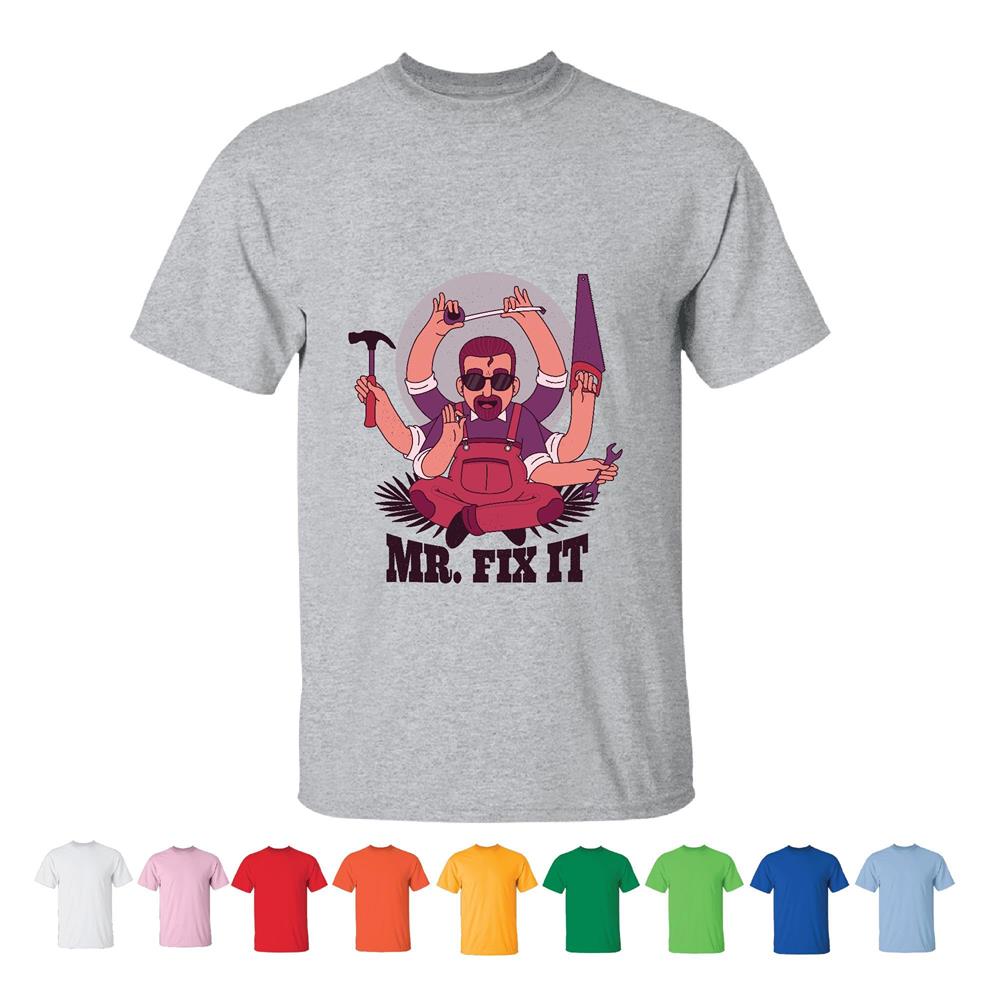 Shiva Style Man with Six Hands Holding Tools Gift for DIYers and Home Improvement Enthusiasts Men Women White Gray T shirt