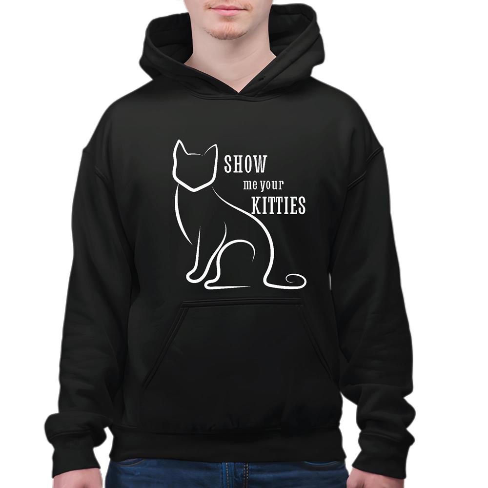 Show Me Your Kitties Cat Lovers Inspirational Sarcasm Humor Gift Black and Muticolor Unisex Hoodie