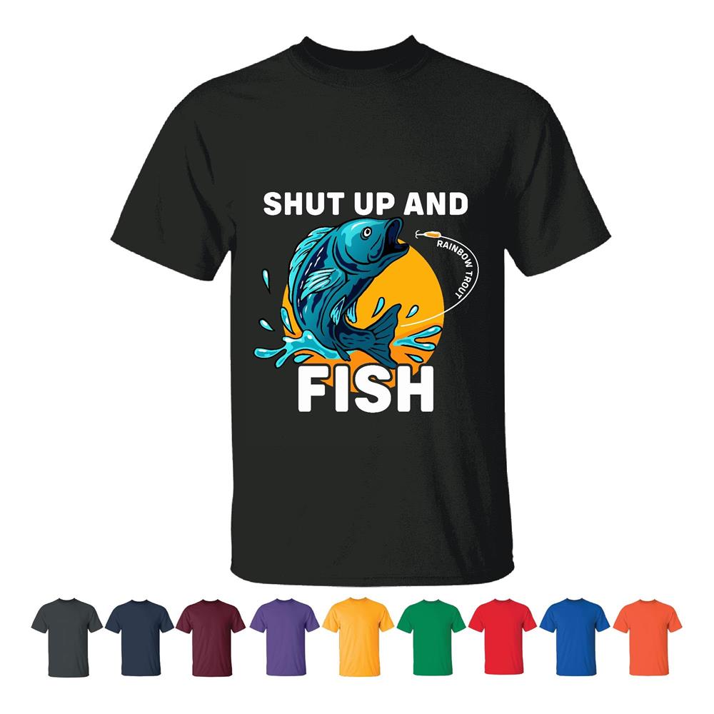 Shut up and Fish Fishing Humor Joke Men Women Black T shirt
