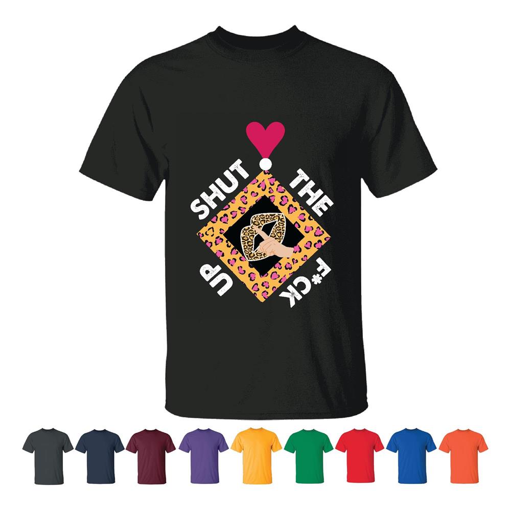 Shut Fuk Up Funny Leopard Lips for Women and Men Men Women Black T shirt